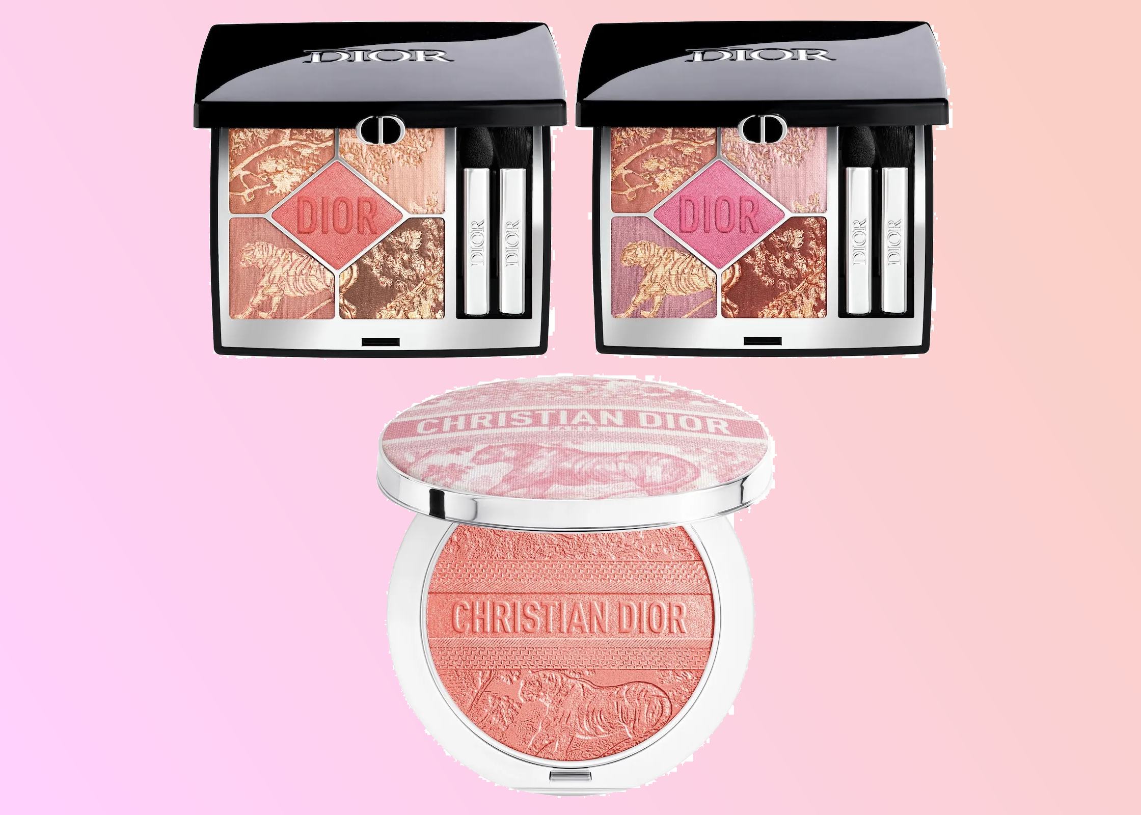 注目は、人気の5色アイシャドウパレット「ディオールショウ サンク クルール」と、ツヤと血色感をプラスしてくれる「ディオールスキン フォーエヴァー グロウ ルミナイザー」。どちらも、細部まで美しく施された「トワル ドゥ ジュイ」のエンボスが特別感を際立たせている。